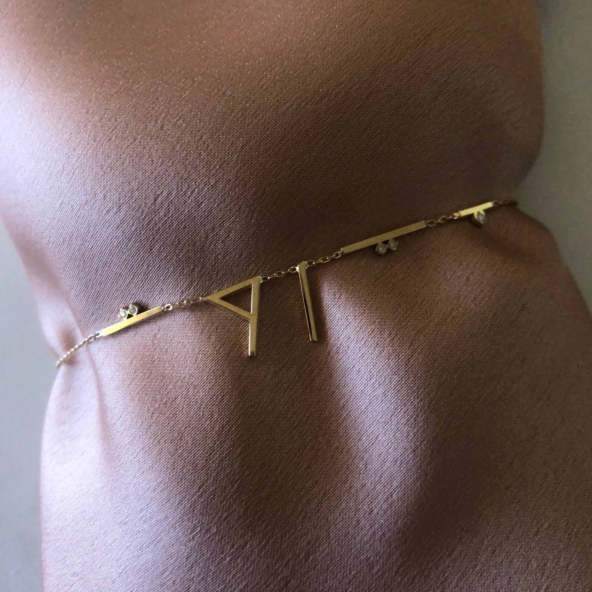 18k yellow gold bracelet with white diamonds and a chain