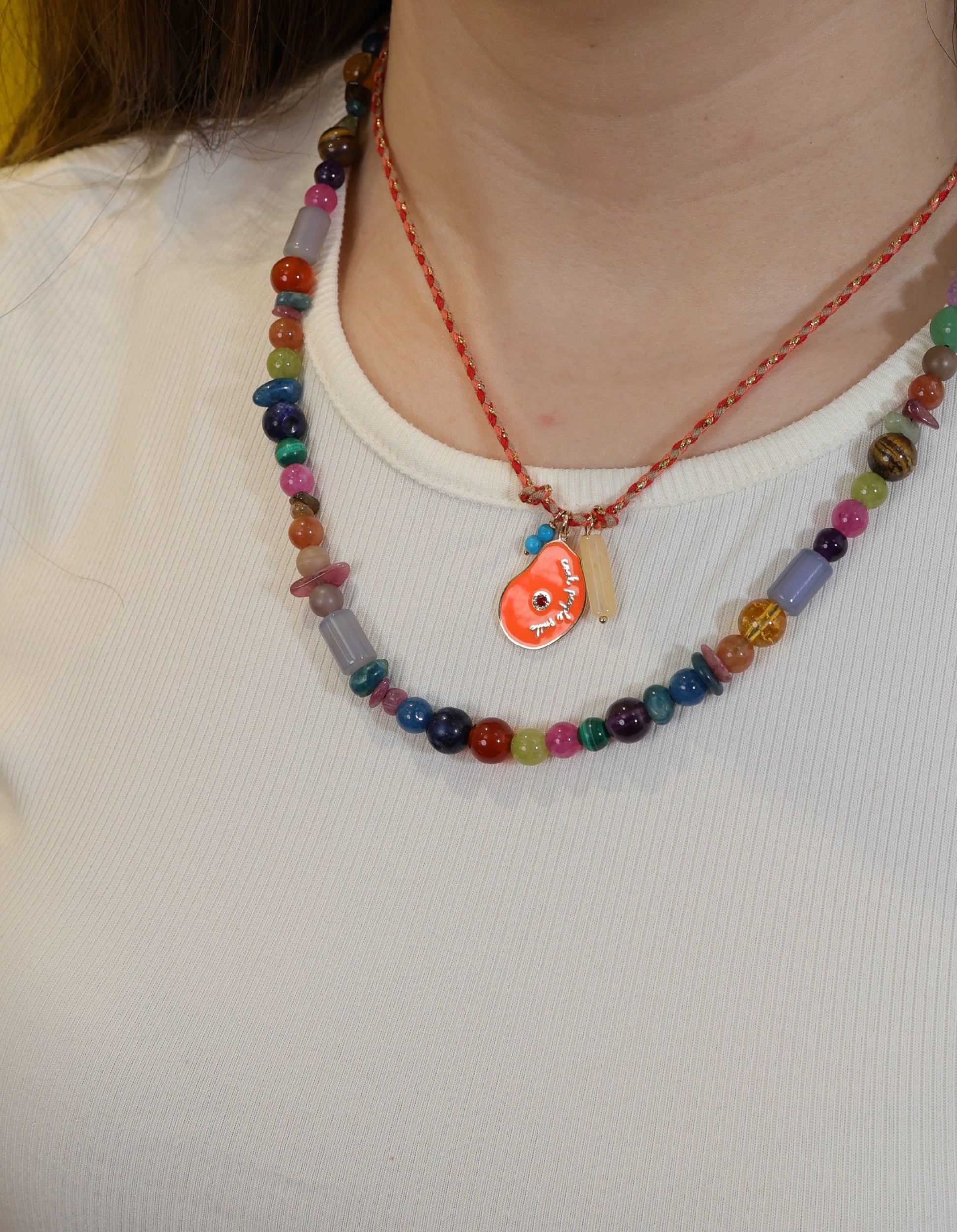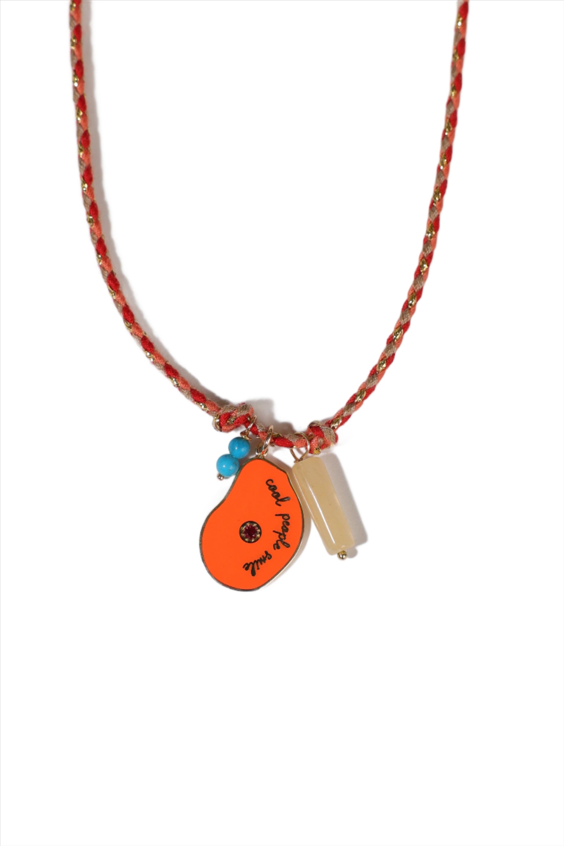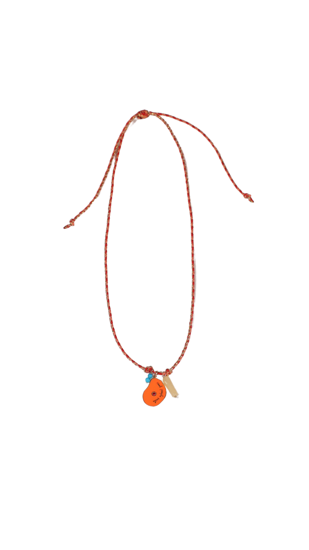 18k gold 'Cool people smile' enamel adjustable pendant with precious stones.