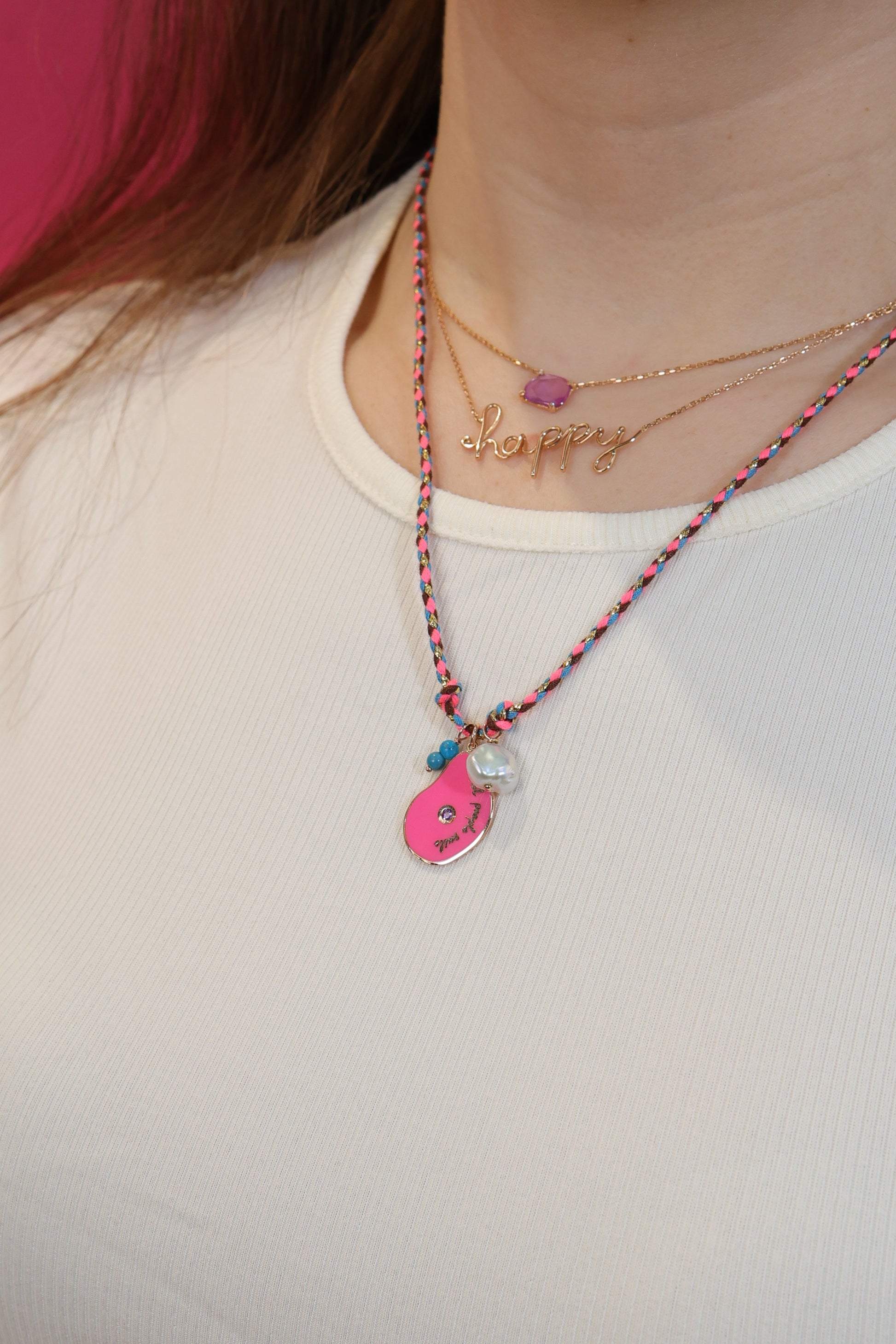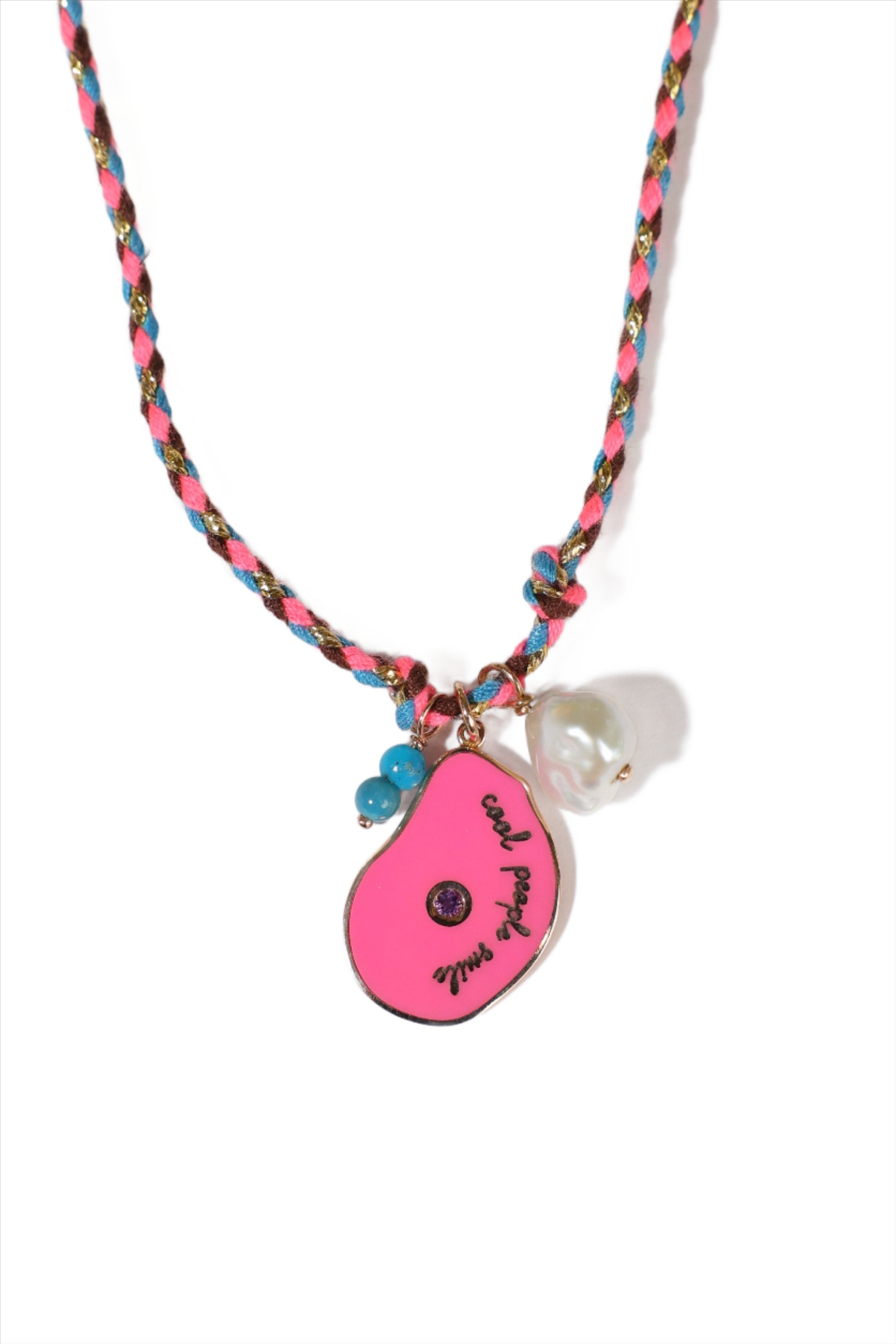 18k gold 'Cool people smile' enamel adjustable pendant with precious stones.