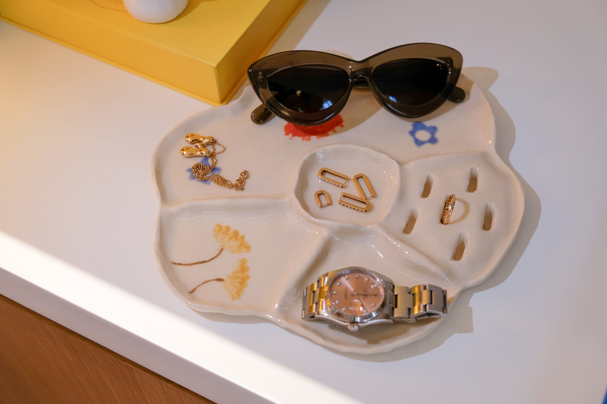 This ceramic vide-poche is shaped and painted by hand, inspired by the soft and hopeful spirit of our Bloomer mood.