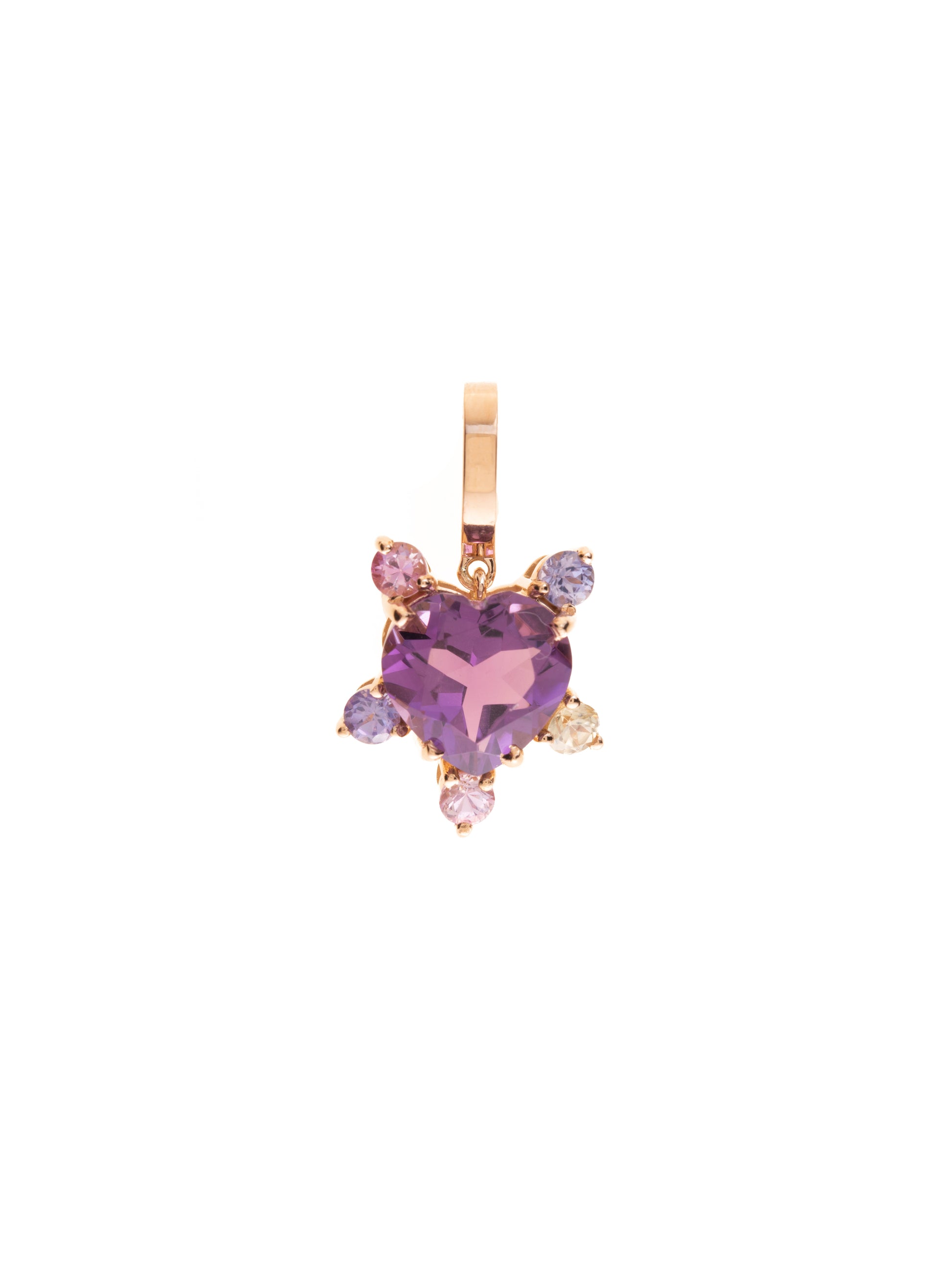 Heart shaped amethyst with round multicolored sapphires (0.79cts)