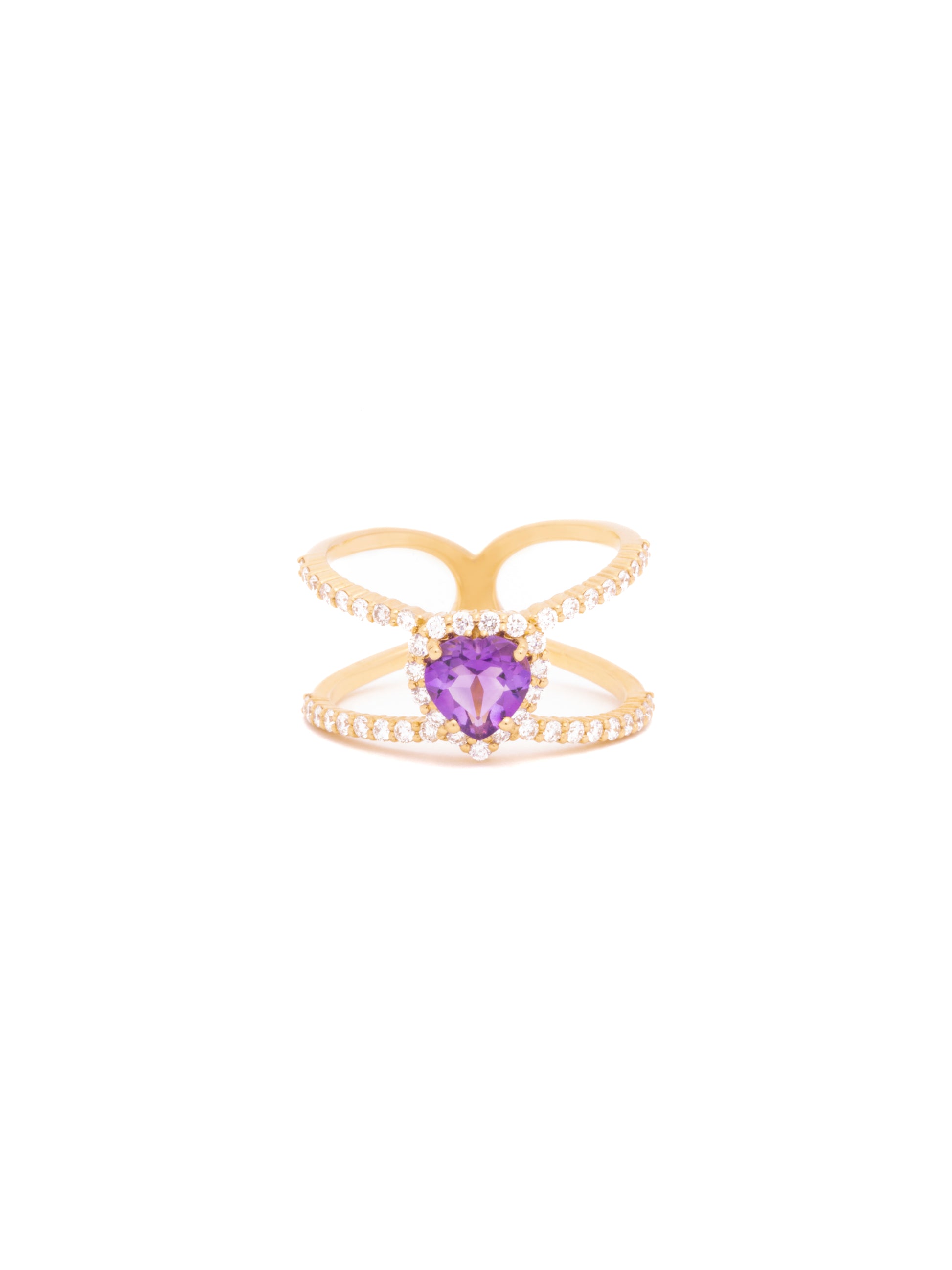 Round diamonds (0.45cts) and heart shaped purple amethyst (0.59ct)