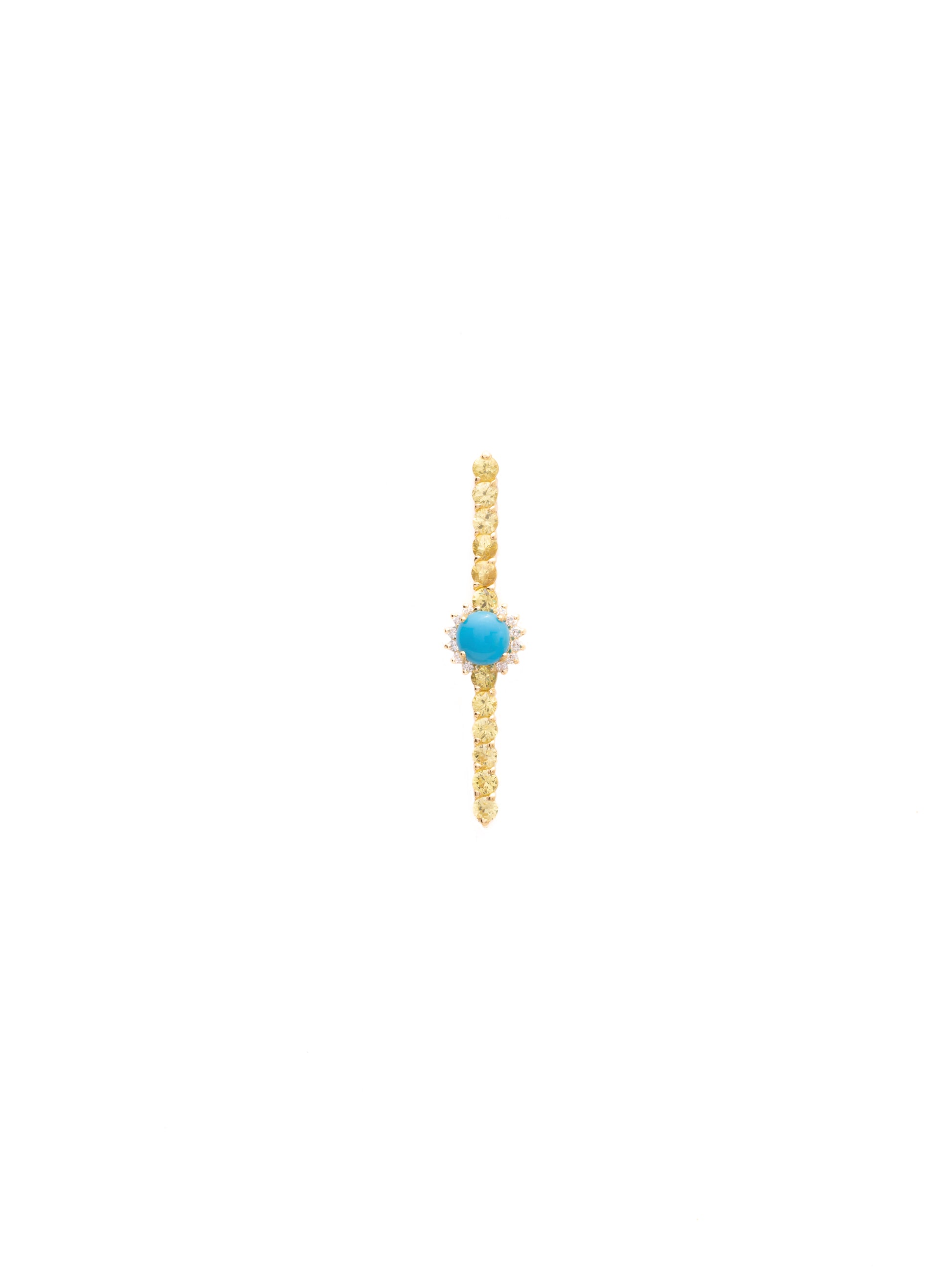 Round yellow sapphires (0.53cts), round diamonds (0.04cts) and round turquoise cabochon