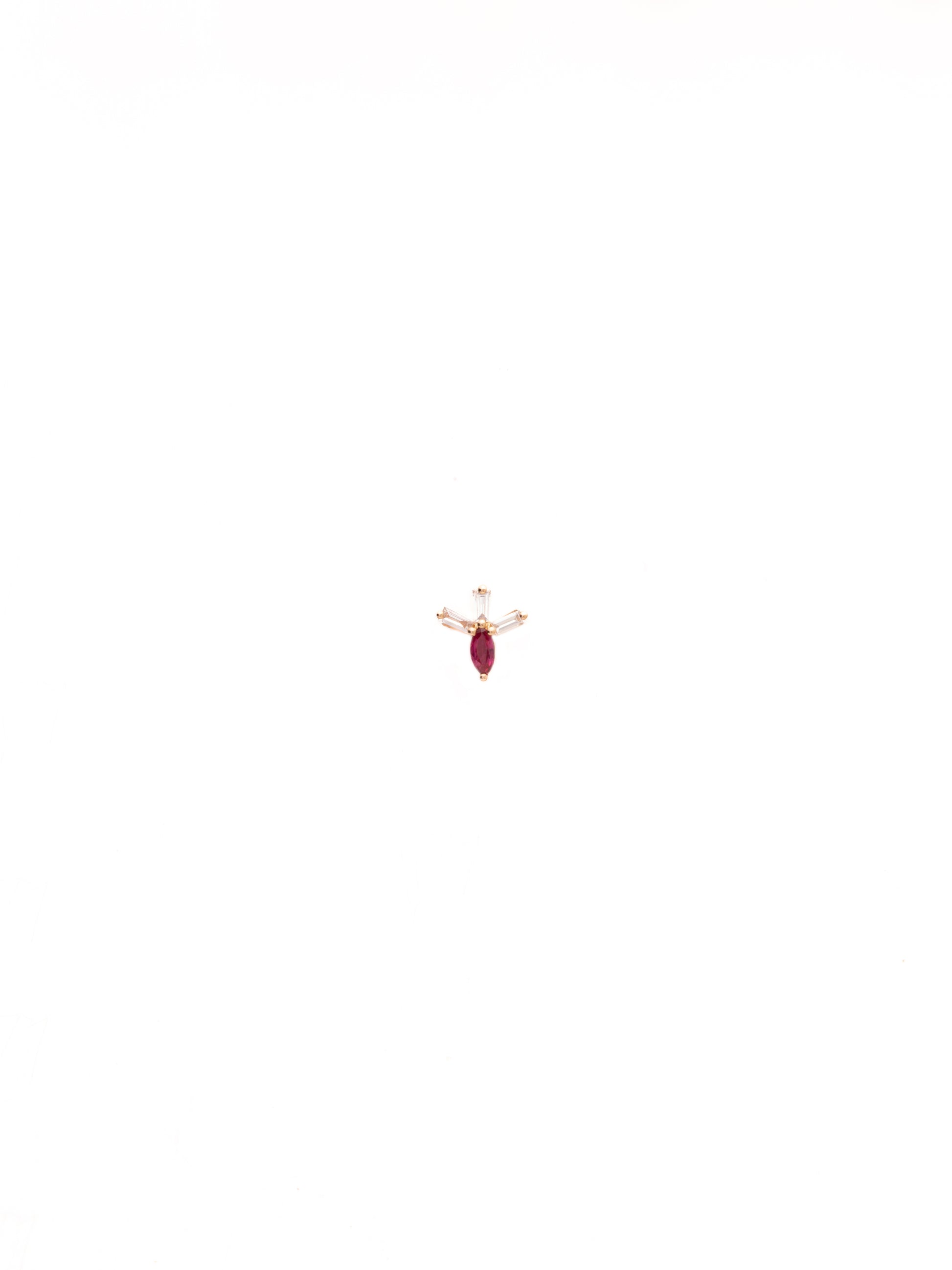 Ruby marquise (0.07ct) and diamond tapered baguettes (0.07cts)
